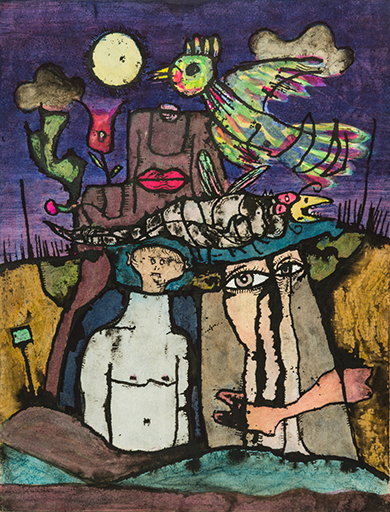 "…..an invitation to dream" for the viewer. In this work, the artist tries to hold on to moments of happiness. Painting stories: whether a visit to a witch doctor, or a meeting with a whale, or love for an hour and a half on a train, and in another the rediscovery of the marsupial wolf. The result is exceptional, stimulating …..”